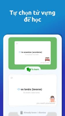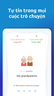 Cốt lõi của DuoCards – Học ngôn ngữ cùng Flashcards & Video nằm ở phương pháp flashcard hiện đại, ứng dụng thuật toán lặp lại ngắt quãng để tối ưu hóa khả năng ghi nhớ. Bạn dễ dàng tương tác bằng cách vuốt để phân loại từ "đã biết" hoặc "chưa biết", để ứng dụng nhắc nhở ôn tập đúng thời điểm, đảm bảo từ vựng được khắc sâu vào trí nhớ dài hạn. Chế độ đoán từ đầy thử thách sẽ biến việc học thành trò chơi: chỉ cần chạm để xem nghĩa bằng tiếng mẹ đẻ, sau đó vuốt phải nếu bạn đoán đúng, hoặc vuốt trái để ôn lại. Hơn 50 ngôn ngữ, từ Ý, Bồ Đào Nha đến Hàn, Nhật đều sẵn sàng chờ bạn chinh phục với tính năng dịch tích hợp tiện lợi.