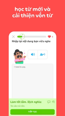 Duolingo biến việc học ngôn ngữ thành một cuộc phiêu lưu đầy thú vị và cực kỳ hiệu quả. Với các bài học được thiết kế như trò chơi cùng những nhân vật hoạt hình sống động, bạn sẽ rèn luyện toàn diện các kỹ năng nghe, nói, đọc và viết một cách tự nhiên. Phương pháp sư phạm của Duolingo được các nhà khoa học ngôn ngữ dày công nghiên cứu, đảm bảo kiến thức không chỉ dễ tiếp thu mà còn ghi nhớ bền vững, giúp bạn xây dựng nền tảng vững chắc cho bất kỳ ngôn ngữ nào.