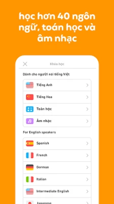 Hòa mình vào thế giới đa ngôn ngữ cùng Duolingo, một nền tảng học tập được tinh chỉnh bởi các chuyên gia ngôn ngữ và tin dùng bởi hàng trăm triệu người trên toàn cầu. Cho dù mục tiêu của bạn là tự tin giao tiếp khi du lịch, nâng cao thành tích học tập, mở rộng cơ hội nghề nghiệp hay đơn giản chỉ muốn kết nối văn hóa, Duolingo sẽ trang bị cho bạn kỹ năng cần thiết cho tiếng Tây Ban Nha, tiếng Pháp, tiếng Trung, tiếng Ý, tiếng Đức, tiếng Anh và vô số ngôn ngữ khác. Đây không chỉ là một ứng dụng, mà là người bạn đồng hành trong hành trình khám phá và làm chủ ngôn ngữ.