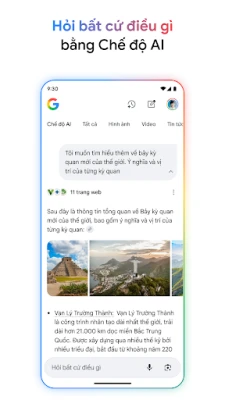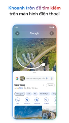 Mở ra cánh cửa tri thức và khám phá thế giới ngay trên thiết bị của bạn với Google. Cho dù bạn cần tìm một nhà hàng lý tưởng gần đây, theo dõi kết quả thi đấu thể thao trực tiếp, xem lịch chiếu và đánh giá phim mới, hay cập nhật tin tức, thông tin cổ phiếu và mọi nội dung đa phương tiện như video, hình ảnh – Google đều cung cấp nhanh chóng và chính xác. Đặc biệt, tính năng Khoanh tròn để tìm kiếm tiên tiến cách mạng hóa cách bạn tra cứu: chỉ cần khoanh tròn, đánh dấu, viết nhanh hoặc chạm vào bất kỳ hình ảnh, video hay văn bản nào trên màn hình để tìm kiếm thông tin liên quan mà không cần rời khỏi ứng dụng bạn đang dùng. Tính năng này hiện có sẵn trên một số mẫu điện thoại Android cao cấp nhất định, tùy thuộc vào khu vực và ngôn ngữ.
