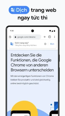 Khám phá tiềm năng vô tận của web cùng Chrome, trình duyệt được thiết kế để tích hợp liền mạch những công cụ thông minh nhất từ Google. Tận hưởng khả năng tìm kiếm siêu tốc, nơi mọi thắc mắc đều được giải đáp tức thì, hay thậm chí tìm kiếm rảnh tay bằng giọng nói. Biến chiếc camera của bạn thành một công cụ khám phá mạnh mẽ với Google Ống Kính, giúp bạn nhận diện và tìm hiểu mọi vật thể xung quanh chỉ bằng một thao tác chạm. Bên cạnh đó, Chrome còn xóa bỏ mọi rào cản ngôn ngữ trên Internet thông qua Google Dịch, cho phép bạn dễ dàng chuyển ngữ toàn bộ trang web sang hơn 130 ngôn ngữ khác nhau chỉ trong tích tắc.
