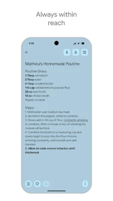 Mở khóa sức mạnh của những ý tưởng bất chợt với Google Keep, công cụ ghi chú linh hoạt được thiết kế để nắm bắt mọi suy nghĩ của bạn một cách liền mạch. Dù là một ý tưởng đột phá, danh sách mua sắm nhanh, hay khoảnh khắc đáng nhớ, Google Keep cho phép bạn ghi lại mọi thứ chỉ trong tích tắc. Dễ dàng tạo ghi chú văn bản, danh sách kiểm tra chi tiết hoặc lưu giữ hình ảnh trực tiếp. Đặc biệt, bạn có thể ghi âm lại lời nói và để Google Keep tự động chuyển đổi thành văn bản, giúp bạn dễ dàng tìm kiếm sau này. Các tiện ích trên điện thoại, máy tính bảng và các ô chức năng trên thiết bị Wear OS đảm bảo mọi cảm hứng đều được ghi lại tức thì, không bỏ lỡ khoảnh khắc nào.