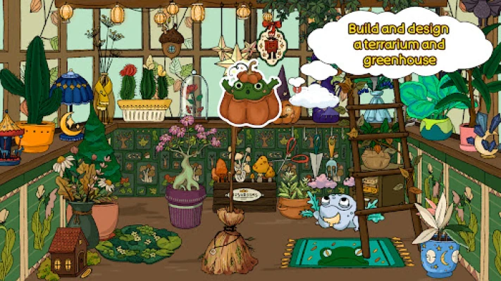 Tại Home Garden Lulu, nhà kính của bạn không chỉ là nơi trồng trọt mà còn là một bảo tàng sống động. Hãy gieo hạt và ngắm nhìn hơn 200 loài cây và hoa độc đáo bung nở, mỗi loại đều góp phần làm phong phú thêm bộ sưu tập thực vật học của bạn và mang lại những phần thưởng giá trị. Biến terrarium thành một tác phẩm nghệ thuật với vô số đồ trang trí dễ thương, mở khóa các vật phẩm nội thất độc quyền thông qua các thử thách và thành tích hàng ngày. Không chỉ vậy, bạn còn có thể ghé thăm quán cà phê ấm cúng của ếch, pha chế những thức uống thơm ngon, hay giúp ếch Lulu giữ gìn hồ cá trong veo, thậm chí mở một cửa hàng hoa của riêng mình để sáng tạo những bó hoa tuyệt đẹp.